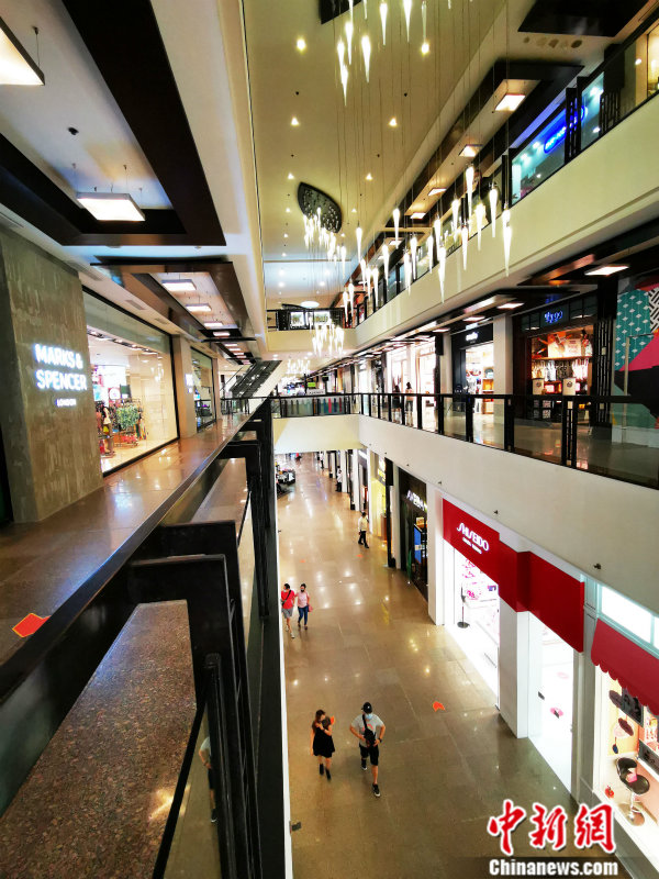 在菲律宾鼎级商场GREENBELT5,尽管顾客不多,但各大连锁品牌店依然开张。中新社记者 关向东摄