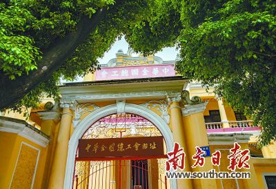 三月的羊城,木棉怒放。越秀南路上,一幢鹅黄色的西式两层洋房在鳞次栉比的居民楼之中显得别具一格。洋房外拱形大门上一块金字红底的牌匾揭示了这幢建筑的特殊身份——中华全国总工会旧址。