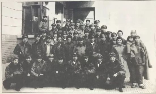 图:“两航”北飞驾机起义人员飞抵天津合影