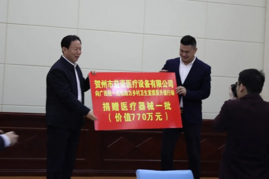 广西壮族自治区贺州市益豪医疗设备有限公司是一家侨资企业,一直以来,公司都积极投身贺州市公益事业。在广西壮族自治区党委统战部发出《统一战线助力村卫生室提质升级行动倡议书》后,贺州市侨联就积极联系益豪公司,号召其参与“行动”,通过努力,成效显著,公司自愿为贺州70个村卫生室捐赠医疗设备,价值共计人民币770万元。3月22日下午,公司的爱心受到前来贺州调研的广西壮族自治区党委常委、统战部部长徐绍川的高度评价,徐绍川还代表广西壮族自治区党委统战部在广西东融产业园亲自接受贺州市益豪医疗设备有限公司“统一战线助力村卫生室提质升级行动”捐赠。益豪公司这一爱心公益行动充分展现了公司的社会责任担当,这也是我们侨企的骄傲。