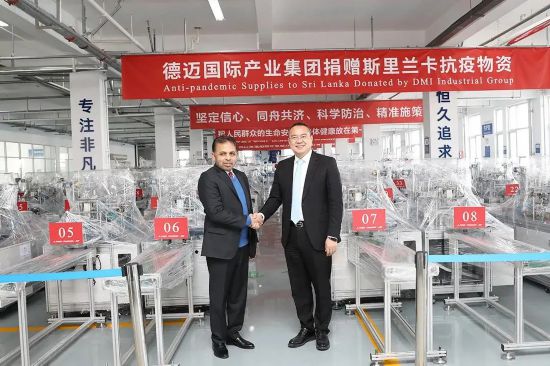 The DMI Industrial Group in Jinan, capital of Shandong province, recently donated a batch of mask manufacturing machines valued at 17.64 million yuan ($2.71 million) to Sri Lanka to help the country's epidemic prevention and control efforts.