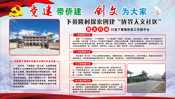 近年来,广东潮州饶平县钱东镇下黄隆村坚持 “党建带侨建”工作方针,将侨务工作与促进文明村居、乡村振兴建设有效融合,积极探索侨务工作新平台,努力实现“抓党建”和“抓侨建”的有机统一,为助推下黄隆村实施乡村振兴、“双创”活动贡献侨的力量。