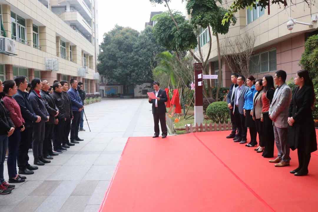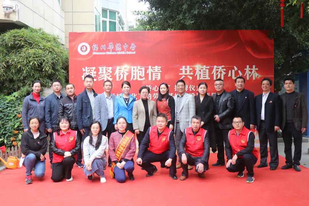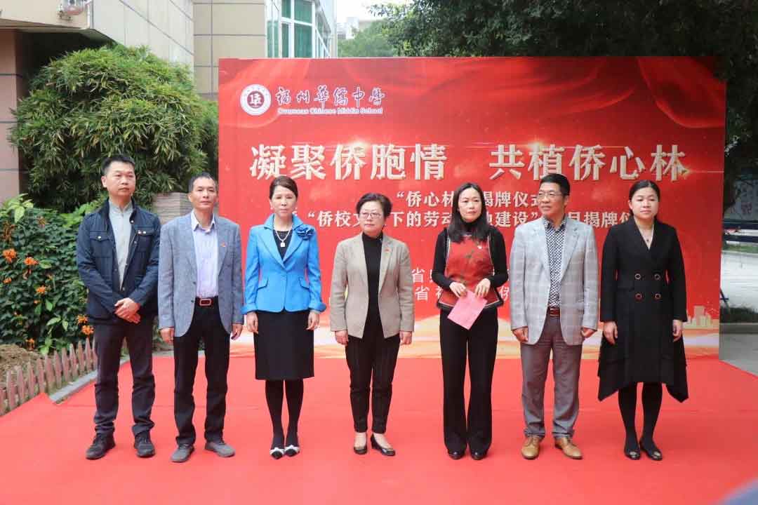 随后,在领导、来宾以及师生们的见证下,与会嘉宾共同为“侨心林”和“侨校文化下的劳动基地建设”项目揭牌。
