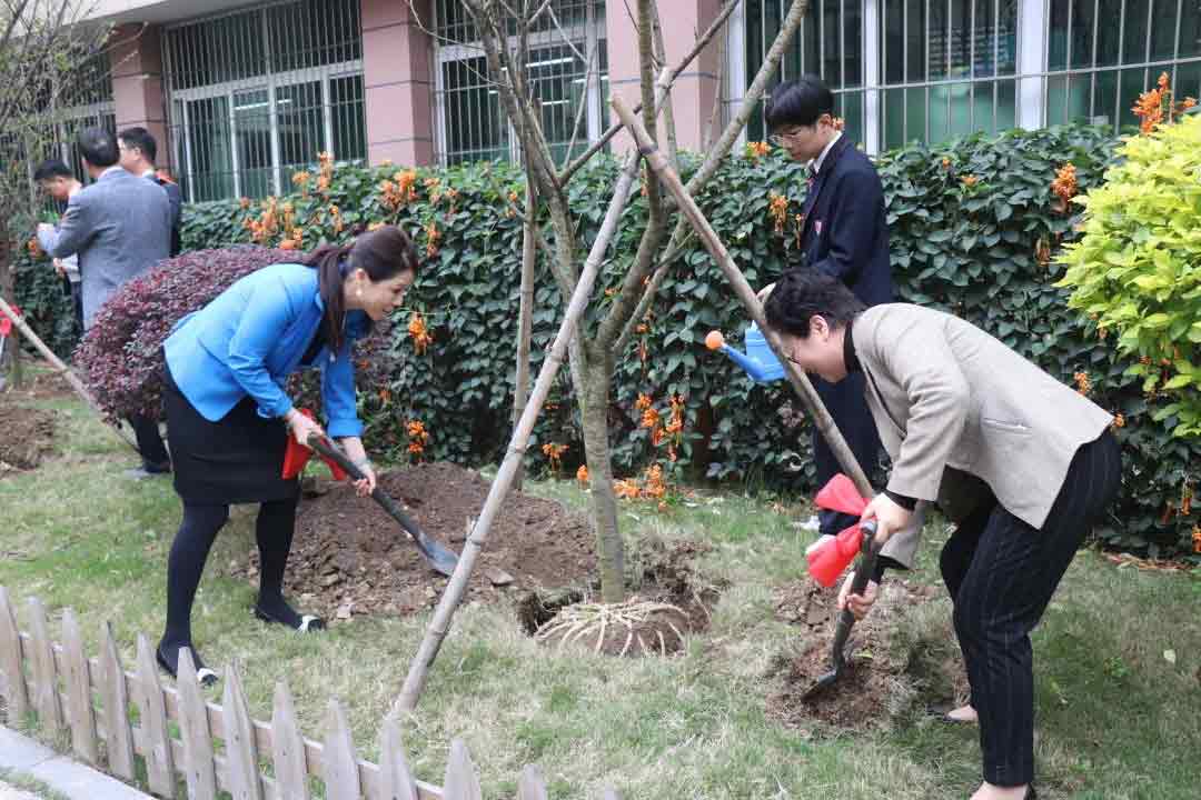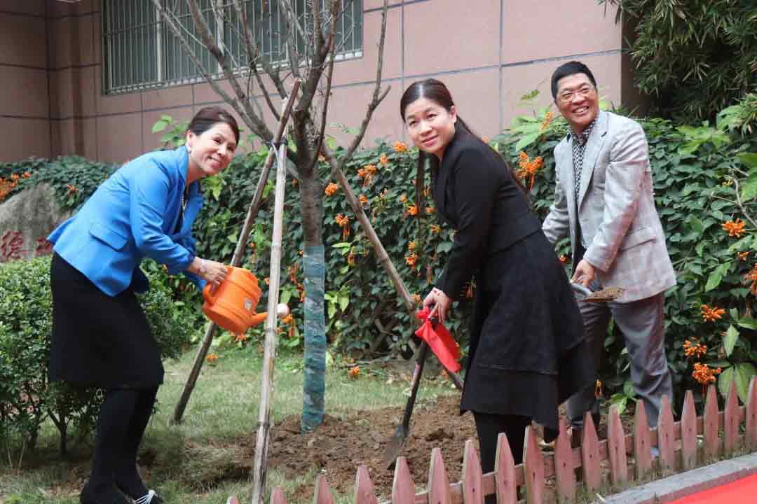 揭幕仪式后,全体领导、来宾、师生们来到侨心林亲手种下一株株樱花树。那一株株象征着希望的樱花树,就像侨中朝气蓬勃的学生一样迎着阳光更加灿烂,就像侨中蒸蒸日上的事业迎着党的阳光更加辉煌,就像爱国爱乡的华侨背靠祖国彰显着“进取、勤劳、开放、包容、奉献”的华侨精神。