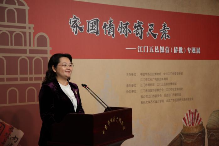 2021年4月9日,由中国华侨历史博物馆、中共江门市委宣传部、江门市文化广电旅游体育局主办,江门市博物馆、江门五邑联合博物馆承办的“家国情怀寄尺素——江门五邑银信(侨批)专题展”在中国华侨历史博物馆开幕。中国侨联顾问黄军军、唐闻生出席开幕式。
