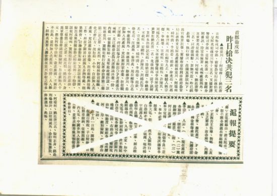1928年10月7日南京《民生报》载枪杀孙津川、何瑞林、姚佐唐消息