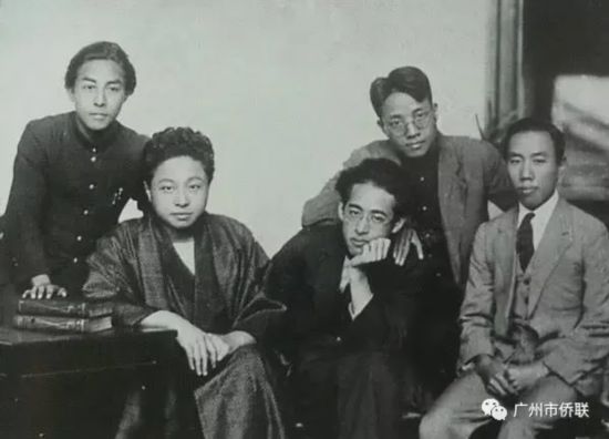 1927年,创造社成员摄于日本东京。左起:冯乃超、王道源、陶晶孙、李白华、成仿吾。