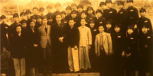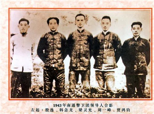 1943年南通警卫团领导人合影,左二左三分别为韩念龙、梁灵光