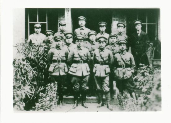 1927年朱克靖与北伐军部分政工人员在南昌的合影。前排左二为郭沫若,左三为朱克靖,左四为李富春;后排左二为李一氓,左三为林伯渠。