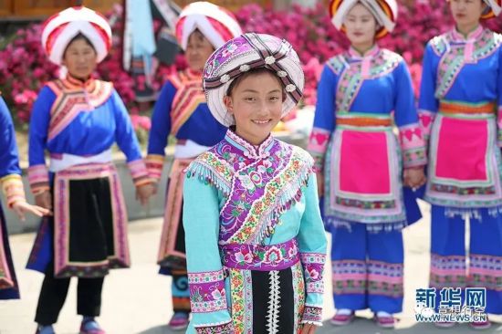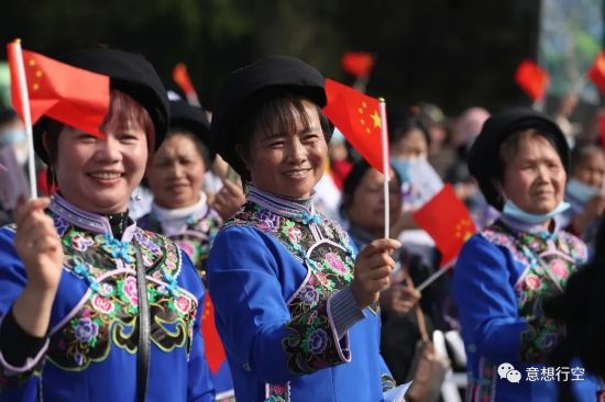 快闪表演中,陈红珍笑容格外灿烂,她是晴隆县阿妹戚托小镇新塘社区主任。据她介绍,阿妹戚托小镇2018年建成,曾经的极贫乡镇三宝彝族乡整乡搬迁入住。2019年小镇被评为国家AAA级旅游景区,在重点发展特色民族旅游产业的同时因地制宜建设产业园区,引进刺绣生产、服装加工、摩托车生产企业,增加当地群众收入。2020年陈红珍所在的新塘社区359户贫困户全部脱贫摘帽。阿妹戚托小镇因搬迁兴起,靠旅游走出一条致富路。