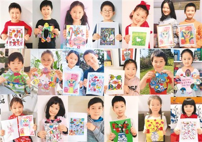 图为美术班部分学生在网络课堂上展示自己的绘画作品。