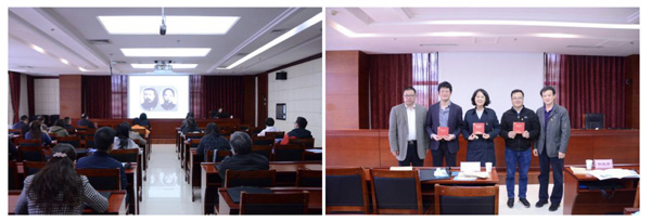 21日中午,在秦皇岛李大钊干部学院,全体党员与河北省侨联党支部党员一起聆听了于淑红副教授作的《李大钊——中国共产主义运动的先驱》专题讲座,全面了解李大钊的生平以及对中国共产党、中国共产主义运动的伟大贡献。课后,经济科技部党支部举行了微党课,四月份入党的赵红英、石磊、贾新伟三位同志分享入党经历,回顾入党初心,检视思想动态,引起了全体党员的共鸣。侨商会秘书处党支部书记夏付东、经科部党支部副书记祁德贵向三位同志赠送了政治生日卡。
