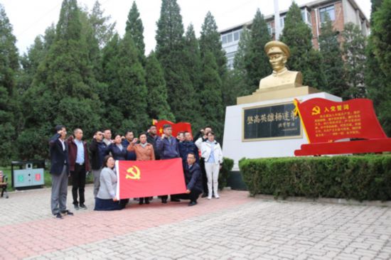 最后,全体党员在杨连弟烈士的塑像前,整齐肃立,面对鲜艳的党旗重温入党誓词,用铿锵有力的誓言展现不忘初心、牢记使命、接续奋斗的信心和决心。