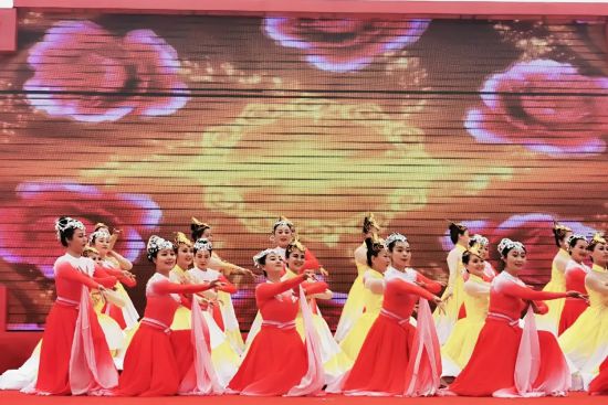 舞台上,开场舞《盛世欢歌》拉开了演出的序幕,欢快动人的舞姿跳出了新时代人民对美好生活的向往;马鞍山市湖阳农民京剧艺术团孙珊珊在京剧《江姐》绣红旗选段表演中,声情并茂地呈现了革命烈士对党的无限忠诚;安徽省杂技团金子鑫等带来的《中国龙·顶板凳》杂技表演,将技巧和力量巧妙结合,赢得叫好声不断。