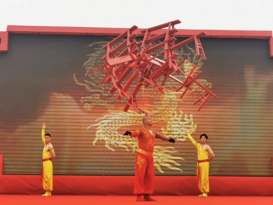 安徽省杂技团金子鑫等表演杂技《中国龙·顶板凳》