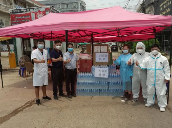 自2021年4月21日老挝第二波疫情爆发,形势严峻,所需防控物资急剧增加。为了响应中国大使馆和老挝政府号召,老挝广西商会主动承担防疫社会责任,发扬广西人博爱精神。在会长陈钦儒及商会领导倡议下发起了捐赠活动,商会全体会员及老乡们积极踊跃参与捐款捐物,为奋斗在一线的医务人员及所需物资人员提供了大力支持。
