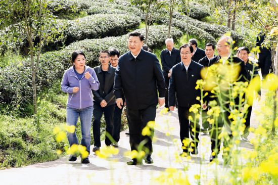 2021年3月22日至25日,中共中央总书记、国家主席、中央军委主席习近平在福建考察。这是22日下午,习近平在南平武夷山市星村镇燕子窠生态茶园,察看春茶长势,了解当地茶产业发展情况。 新华社记者 鞠鹏/摄