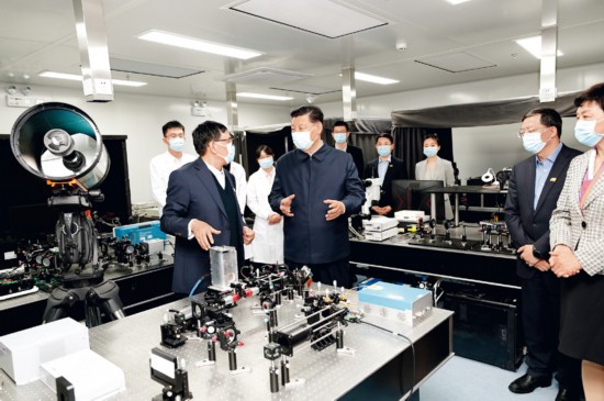 2021年4月19日,在清华大学建校110周年校庆日即将来临之际,中共中央总书记、国家主席、中央军委主席习近平来到清华大学考察。这是习近平在清华大学成像与智能技术实验室同师生们亲切交谈。 新华社记者 黄敬文/摄