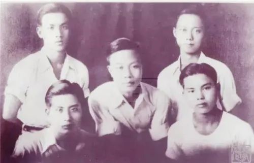 1938年林有声(右一)与同学奔赴延安时在广州合影