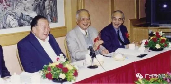梁披云(右)、李尚大(左)、梁灵光(中)三任董事长笑谈福建黎明大学发展。