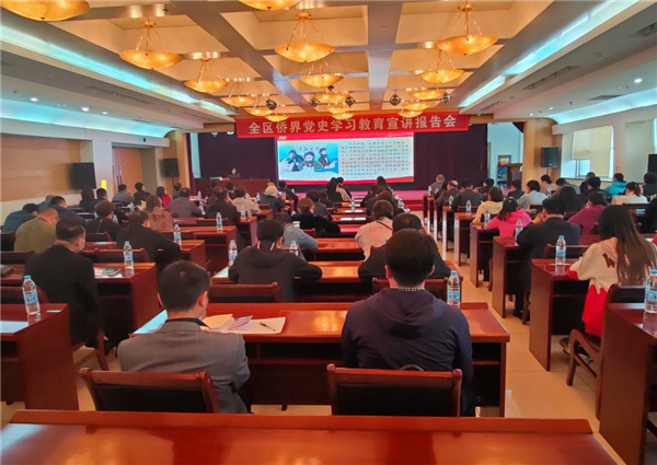4月23日下午,宁夏侨联在银川市举办“全区侨界党史学习教育宣讲报告会”,党史学习教育宁夏区委宣讲团成员、宁夏区委党校副校长李培文作宣讲报告。宁夏侨联八届委员会委员、全区各级侨联组织主要负责同志、归侨侨眷和侨资企业代表及宁夏侨联机关全体干部职工100余人参加宣讲报告会。宁夏侨联副主席郑大鹏主持会议。