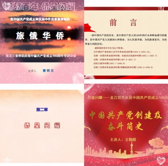 “砥砺百年 侨星闪耀”宣讲会是黑龙江省侨联为了庆祝中国共产党成立100周年在全省侨联系统开展的一项活动,旨在回顾百年峥嵘党史,宣扬一代又一代海外侨胞和归侨侨眷为中国革命、建设、改革事业作出的巨大贡献,引导广大侨界群众厚植爱党、爱国、爱家情怀。接下来,各市(地)侨联的宣讲活动将相继开展,从不同角度展示归侨侨眷、海外侨胞以及侨联干部对党和国家、对家乡故土的深情厚谊和无私奉献,向党的百年华诞献礼。