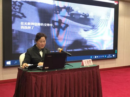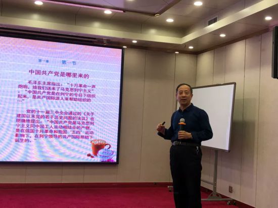 省社会主义学院中华文化研究中心研究员、黑龙江统一战线同心书画院办公室主任王勒懿以“中国共产党创建及奋斗简史”为题,对中国共产党的创立及其早期革命活动、第一次国内革命战争时期、第二次国内革命战争时期、抗日战争时期、第三次国内革命战争时期这五个重要时期进行了详细解读,全面系统地为大家展现了百年党史的发展脉络。报告深入浅出、充满激情。