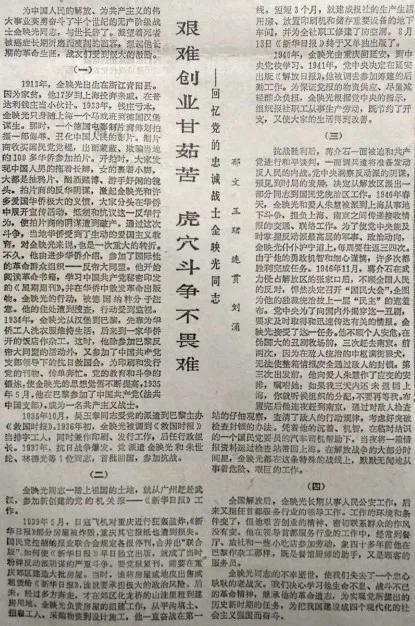 郁文、王珺、连贯、刘涌署名回忆金映光同志的文章,刊登于1983年7月9日《人民日报》第四版