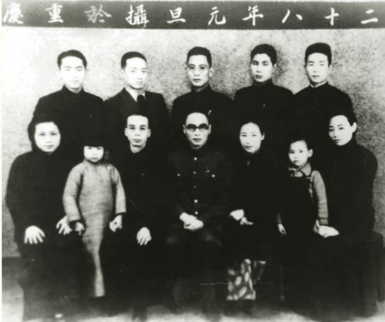 1939年元旦,金斌、郑凤丹夫妇在重庆与子侄辈合影。前排左起:金慧芬、陈才珍、陈晓庐、金斌、郑凤丹等,后排左起:金程光、金映光、金耀光、金志光(金刚)