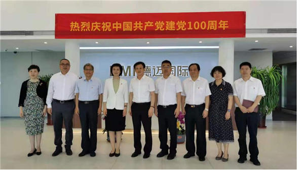 6月10日祁德贵副部长一行考察中国侨联侨创基地德迈集团,并与企业负责人座谈。山东省侨联副主席卢文朋,山东省侨联副主席、济南市侨联党组书记、主席米文芃等陪同出席相关活动。