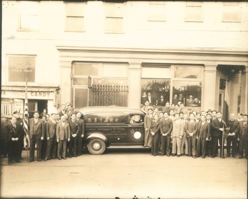(衣联会会员在捐赠给国内抗战用救护车起运回国前留影 中国华侨历史博物馆藏)
