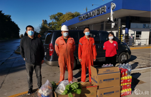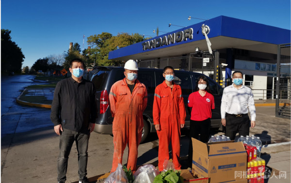 当地时间6月13日下午,在中国传统佳节端午节前夕,阿根廷华人义工团队队长何雄明,队员刘芳勇、陈铭带着防疫物资和食品来到阿根廷首都港口码头,给因货船故障滞留在码头的同胞送来节日食物,让远离家乡的同胞感受到节日温馨和家人温暖。