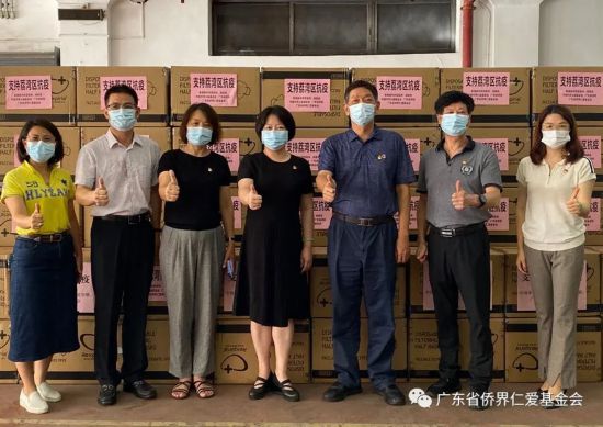 6月15日下午,由广东省侨联党组成员、副主席谢惠蓉带队,广东省侨联基层建设部(权益保障部)部长林建光、广东省侨界仁爱基金会理事长郑楚雄等一行,前往广州市荔湾区荔湾北片区防控指挥部,捐赠65箱共58500个KN95口罩,深入一线支持荔湾区人民群众抗击疫情。荔湾区委常委、统战部部长方武明、荔湾区侨联主席彭爱玲代表接收捐赠物资。谢惠蓉副主席代表省侨联向奋战在抗疫一线的荔湾区干部群众及侨联工作人员表示感谢与问候。