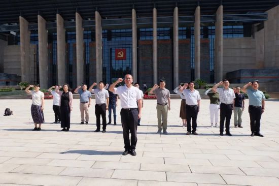 观看记录片后,在省侨联党组成员、副主席、机关党委书记、一级巡视员张维仁的带领下,全体党员在纪念馆北广场的宣誓墙前,面向党旗,重温入党誓词。铿锵誓言在南湖革命纪念馆广场上回荡,一字一句,神圣而豪迈,体现了党员同志们对中国共产党的无限忠诚,让现场所有党员更加坚定牢记自己的庄严承诺。