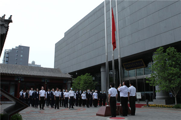 在中国华侨历史博物馆院内小广场上,“一升两唱”仪式如期举行。侨博全体党员干部和首华物业驻馆员工队列整齐,齐唱国歌,庄严注目着五星红旗在雄壮的国歌声中冉冉升起。随后,全体人员高声同唱侨博馆歌《侨爱中华》。侨博人以自己的传统方式抒发爱国、爱党、爱侨、爱馆的情怀,在潜移默化中培育知侨、懂侨、爱侨的职业素养。