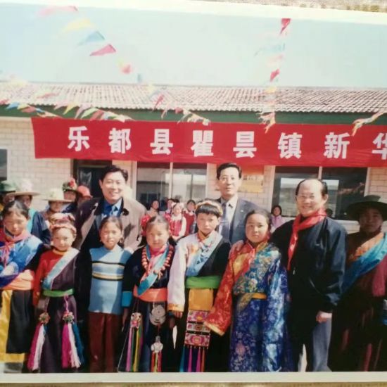 2004年,时任青海省侨联主席的吴天一出席“新华爱心小学”落成典礼