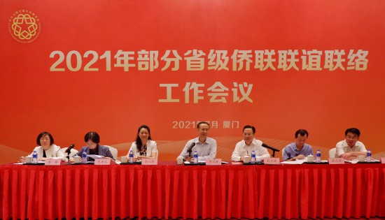 7月14日至15日,中国侨联在厦门召开2021年部分省级侨联联谊联络工作会议,宣讲习近平总书记“七一”重要讲话精神,研究部署新形势下联谊联络工作。中国侨联党组书记、主席万立骏,党组成员、副主席程学源出席并讲话。14个省级侨联和厦门市侨联负责同志以及联谊联络部门负责人参加会议,介绍了本地情况,谈了工作思考和建议。期间,万立骏、程学源一行到厦门市侨联机关、厦门大学调研,同福建省委常委、厦门市委书记赵龙作了工作交流。