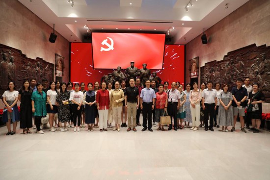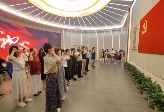 7月14日下午,全体人员赴中共一大会址纪念馆、中共四大纪念馆进行现场教学,重温党的发展历程,缅怀革命先辈事迹。在中共一大会址纪念馆,大家在讲解员的带领下参观了“前仆后继、救亡图存”“民众觉醒、主义抉择”“早期组织、星火初燃”“开天辟地、日出东方”“砥砺前行、光辉历程”等专题展区,详细了解了中国共产党为挽救国家和民族危亡进行的英勇斗争和艰苦探索。在宣誓厅的党旗前,党员们高举右臂,重温入党誓词。