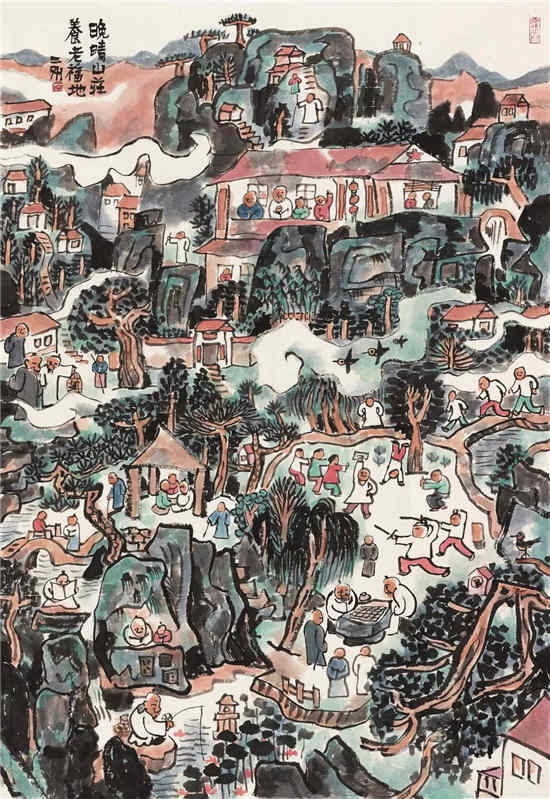刘二刚 晚晴山庄——养老福地 国画 148cm×100cm