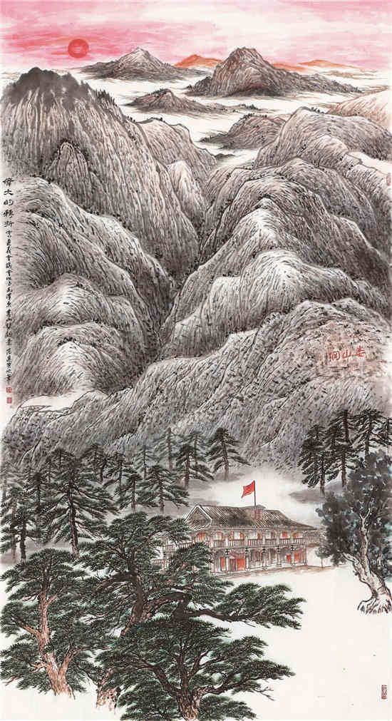 范遵荣 伟大的转折-写遵义会议会址与毛泽东“娄山关”词意 国画 180cm×90cm