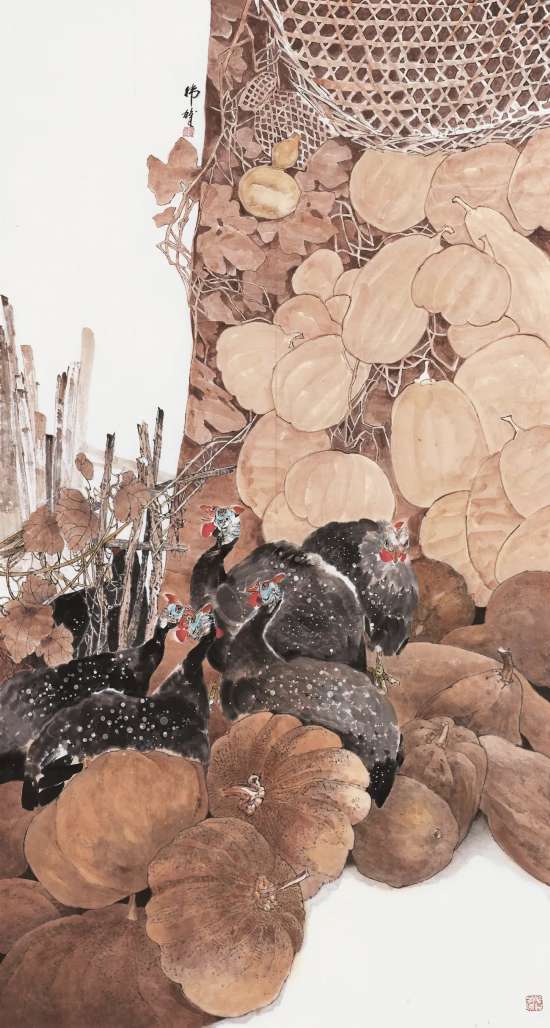 章伟雄 秋硕累累 国画 180cm×95cm