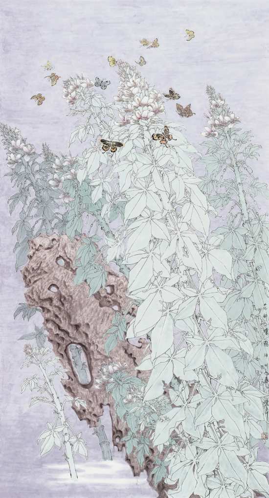孟怀良 花妍蝶飞神州春 国画 180cm×95cm