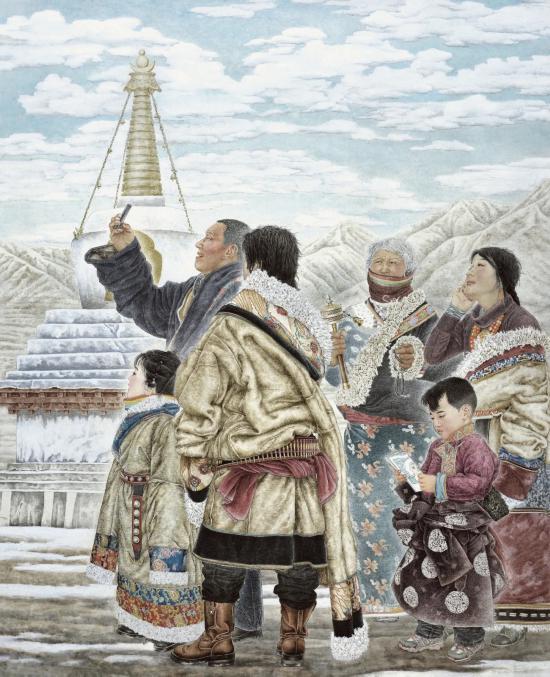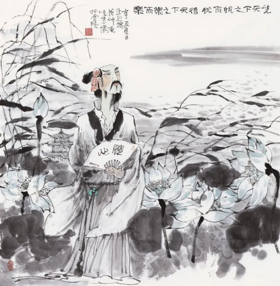 王烈 先天下之忧而忧 后天下之乐而乐 国画 97cm×97cm