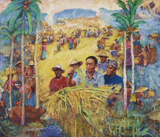 章文熙 丰收的喜悦 油画 150cm×174cm