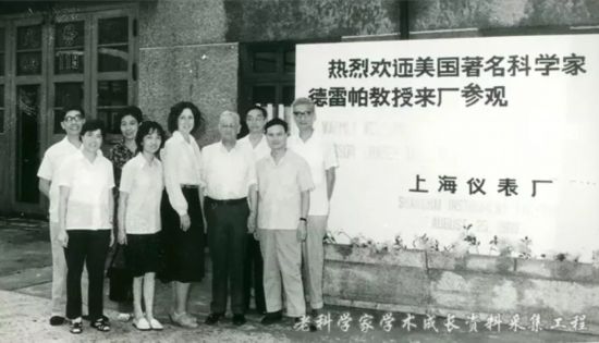 1980年,陆元九(后排右一)陪同德雷伯教授(前排右二)到上海仪表厂参观