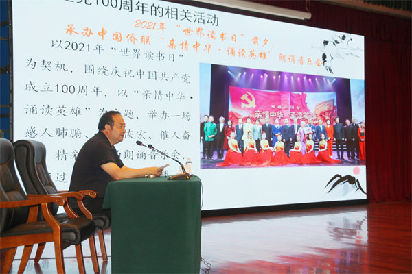 6月23日晚,为庆祝中国共产党建党100周年,由山东省侨联主办,日照市侨联和山东外国语职业技术大学共同承办的《永远跟党走——百年同心看今朝》全省侨联系统庆祝中国共产党成立100周年晚会在山东外国语职业技术大学报告厅举办。演出分为“开天辟地、改天换地、翻天覆地、惊天动地”四个篇章,通过合唱、歌舞、器乐演奏、情景朗诵、戏曲联唱等节目,深情展示了中国共产党带领广大人民群众建设新中国的百年历程,讴歌了各族人民紧密团结在党的周围,携手奋进建设祖国的动人篇章。李兴钰主席、刘奇部长,日照市委市政府领导,参加全省侨联系统干部培训班的学员和山东外国语职业技术大学的师生们共800余人观看出了演出。