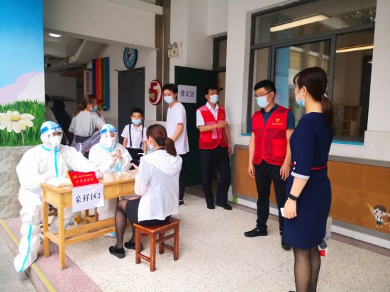 7月22日,江苏省侨联积极响应省委省政府号召,紧急行动,组织党员志愿服务队协助党建共建单位——宁海路仙霞路社区做好全员核酸检测工作。面对突发疫情,省侨联第一时间主动联系共建社区,迅速组织党员志愿服务队赶赴核酸检测一线,积极参与共建社区的全员核酸检测工作。期间,省侨联党员志愿服务队积极参与核酸检测现场秩序维护、人员引导、信息登记、防疫知识宣介等工作,同时还向社区群众和工作人员捐赠矿泉水、防疫消毒用品。