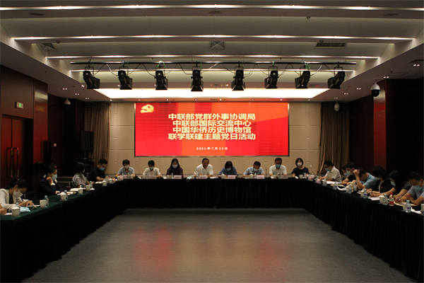 为进一步学习贯彻习近平总书记“七一”重要讲话精神,持续深入开展好党史学习教育,2021年7月23日下午,中联部党群外事协调局党支部和国际交流中心党支部的25位党员来到中国华侨历史博物馆(以下简称“侨博”),与侨博党支部开展联学联建主题党日活动。
