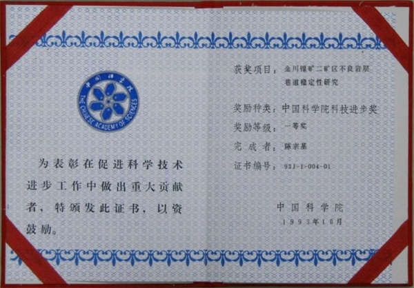 图1 陈宗基荣获中国科学院科技进步一等奖
