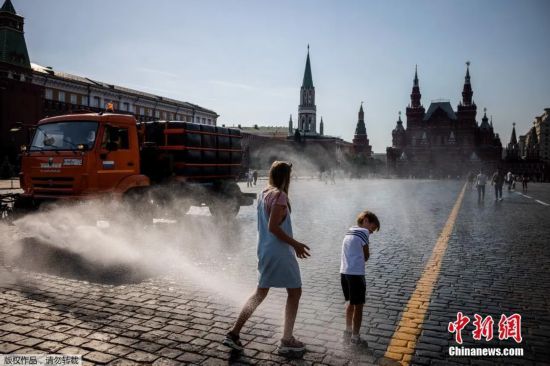 资料图:俄罗斯首都莫斯科,民众在室外消暑享清凉。